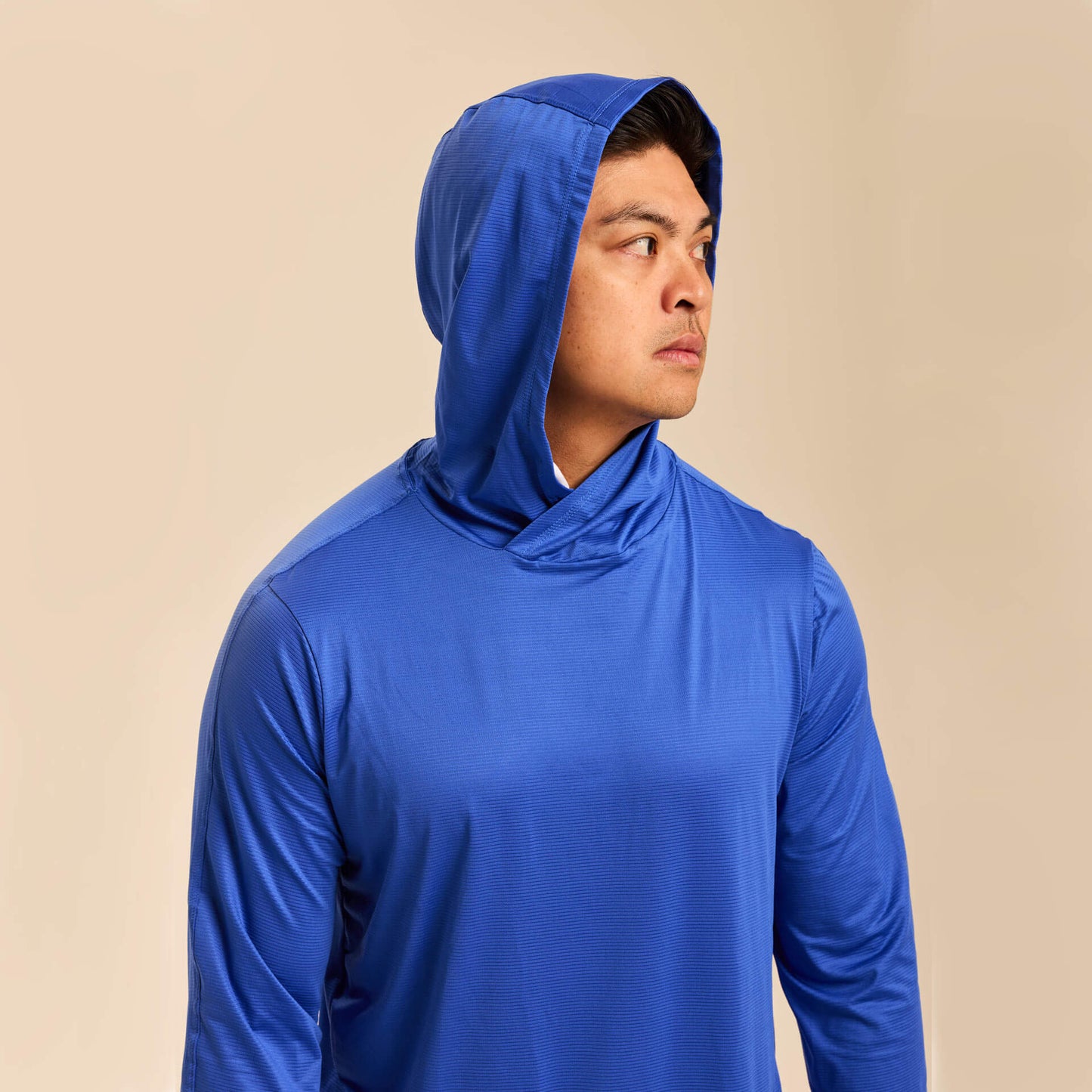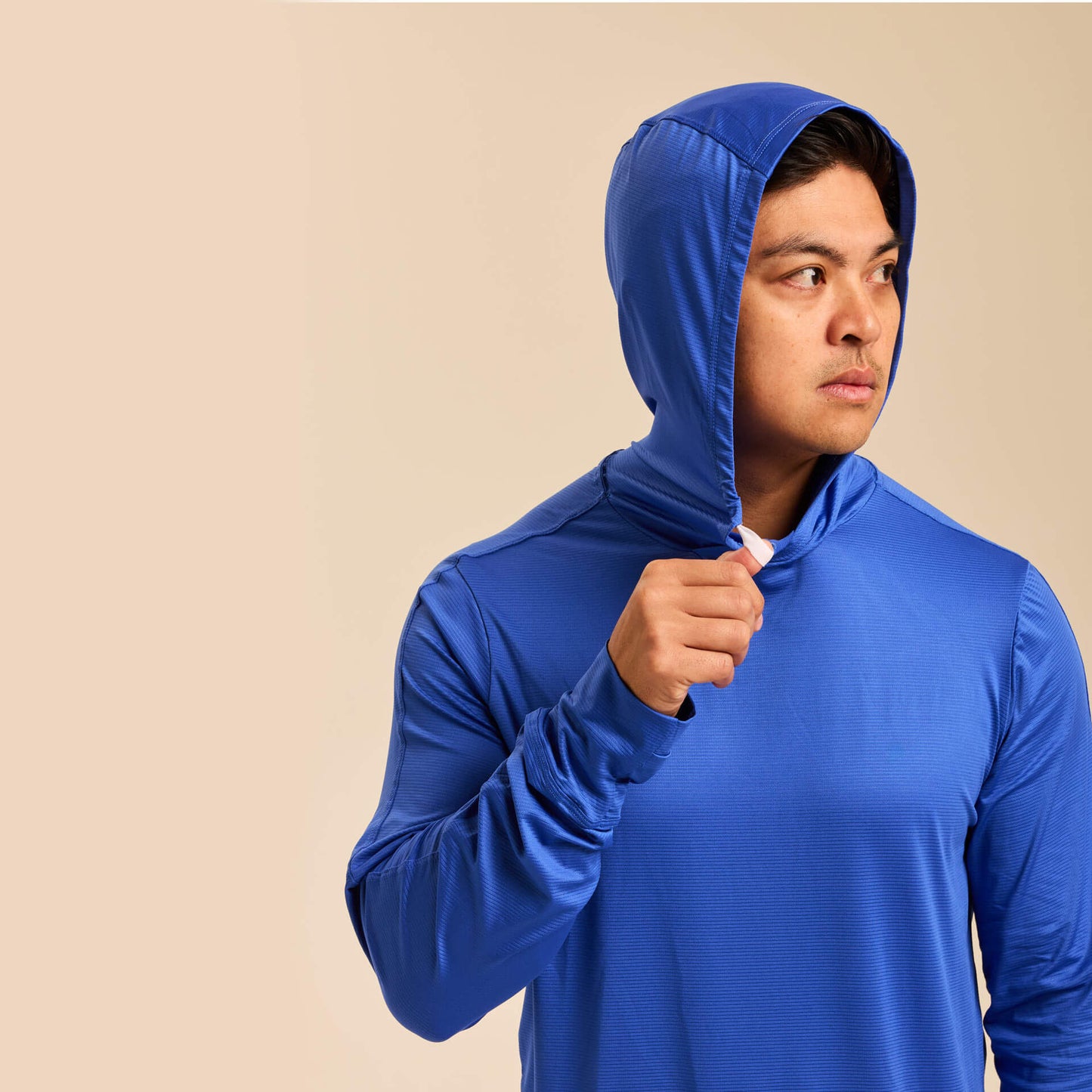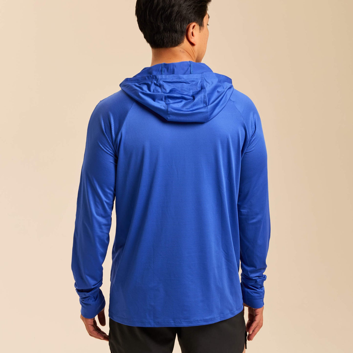 The extra-stretchy 4-way stretch fabric moves effortlessly with your body, while thumbholes provide added coverage for hands and wrists and help keep sleeves in place during activity. A continuous drawstring hood design keeps cords secure and out of the way, eliminating distractions while you hike, run, cycle, fish, golf, or train outdoors.