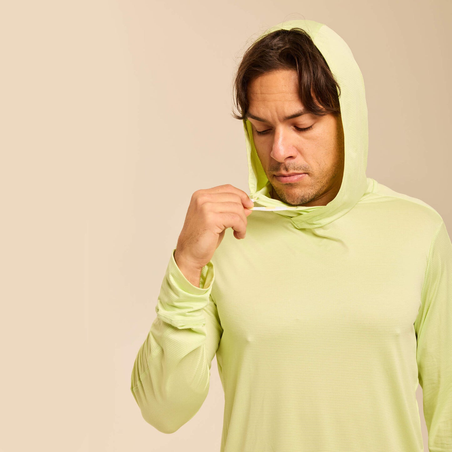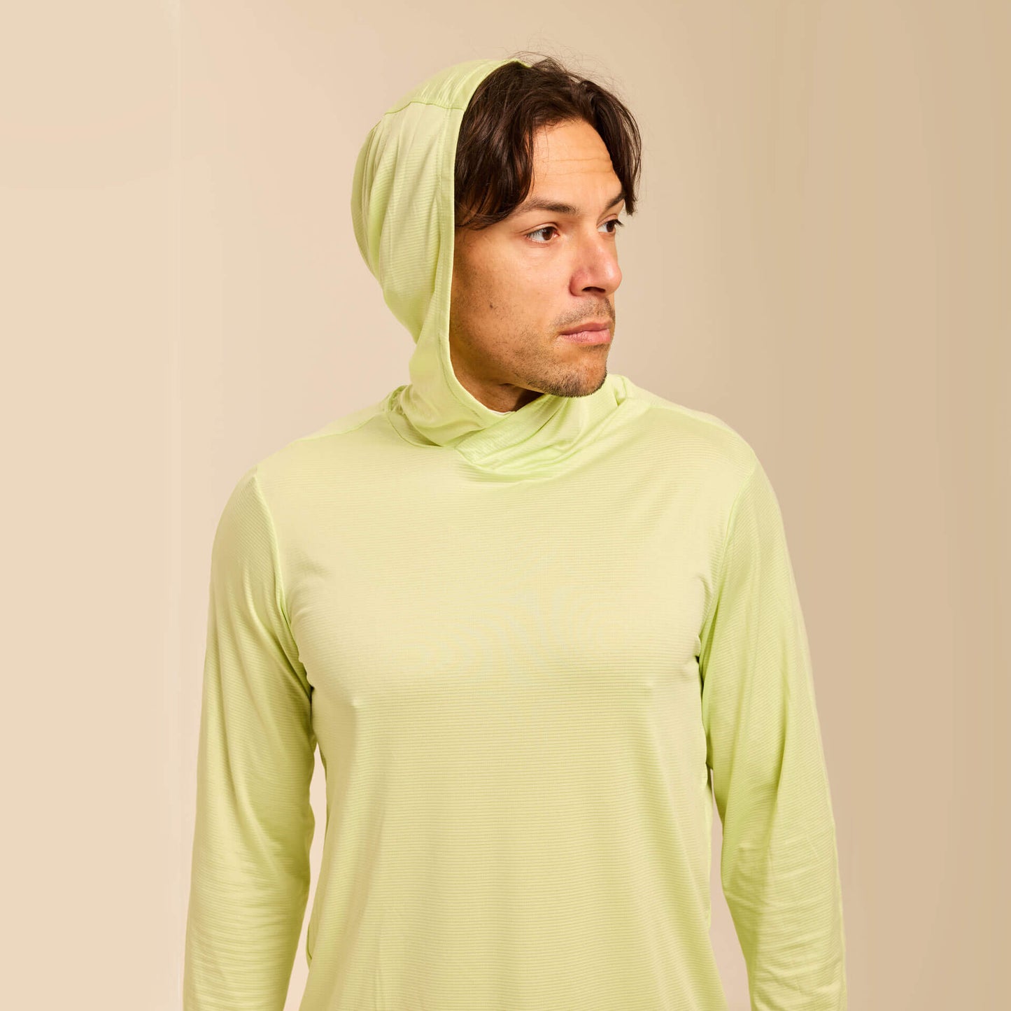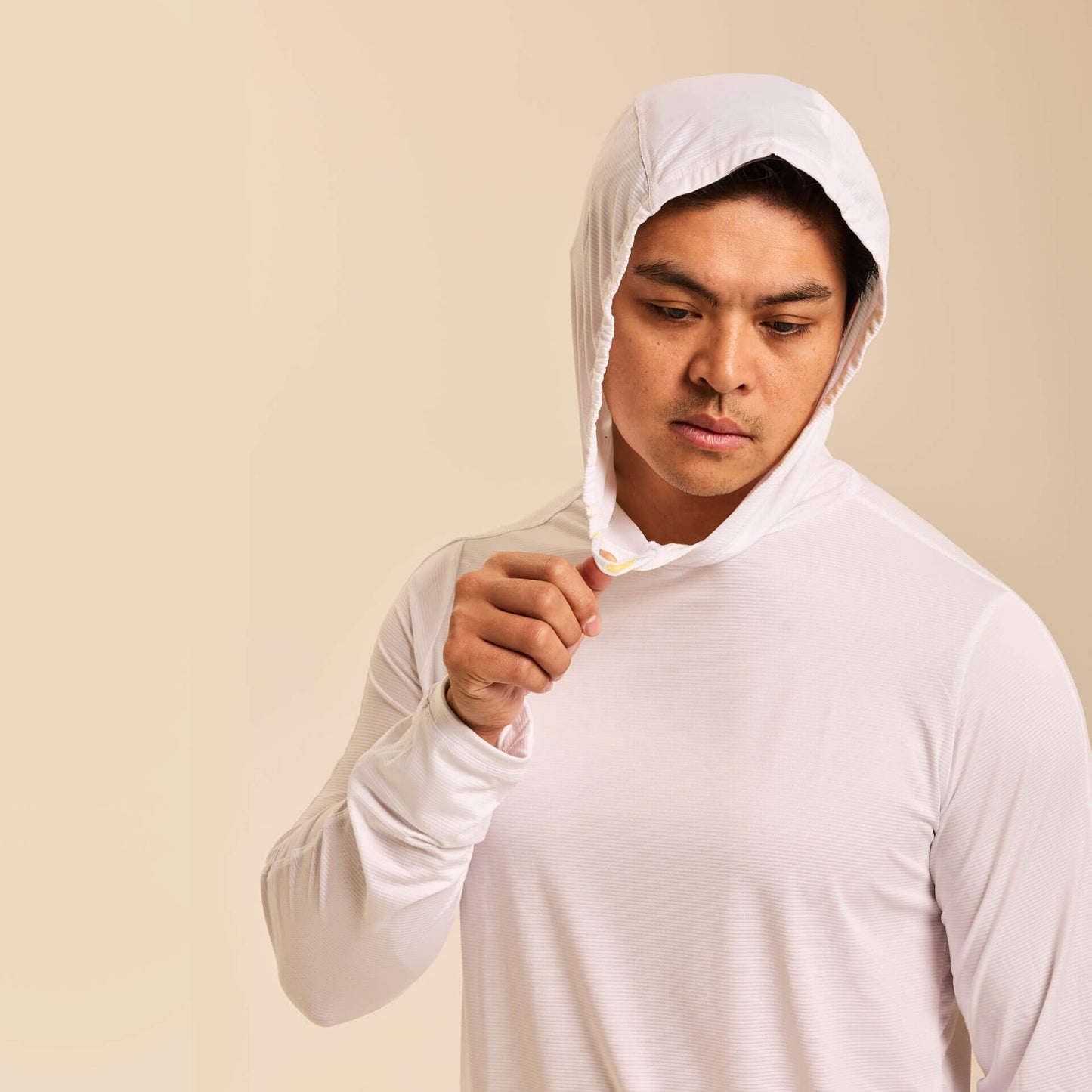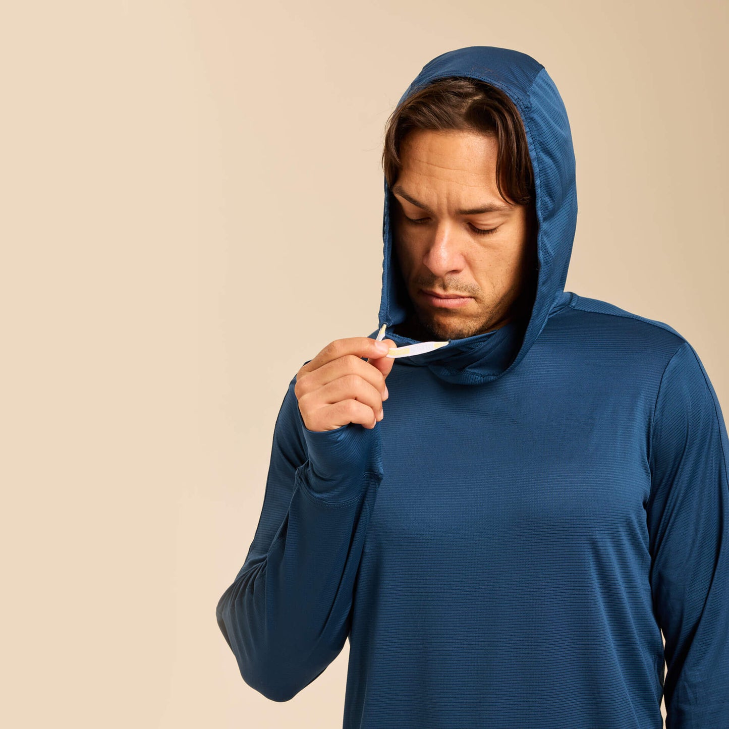 The extra-stretchy 4-way stretch fabric moves effortlessly with your body, while thumbholes provide added coverage for hands and wrists and help keep sleeves in place during activity. A continuous drawstring hood design keeps cords secure and out of the way, eliminating distractions while you hike, run, cycle, fish, golf, or train outdoors.